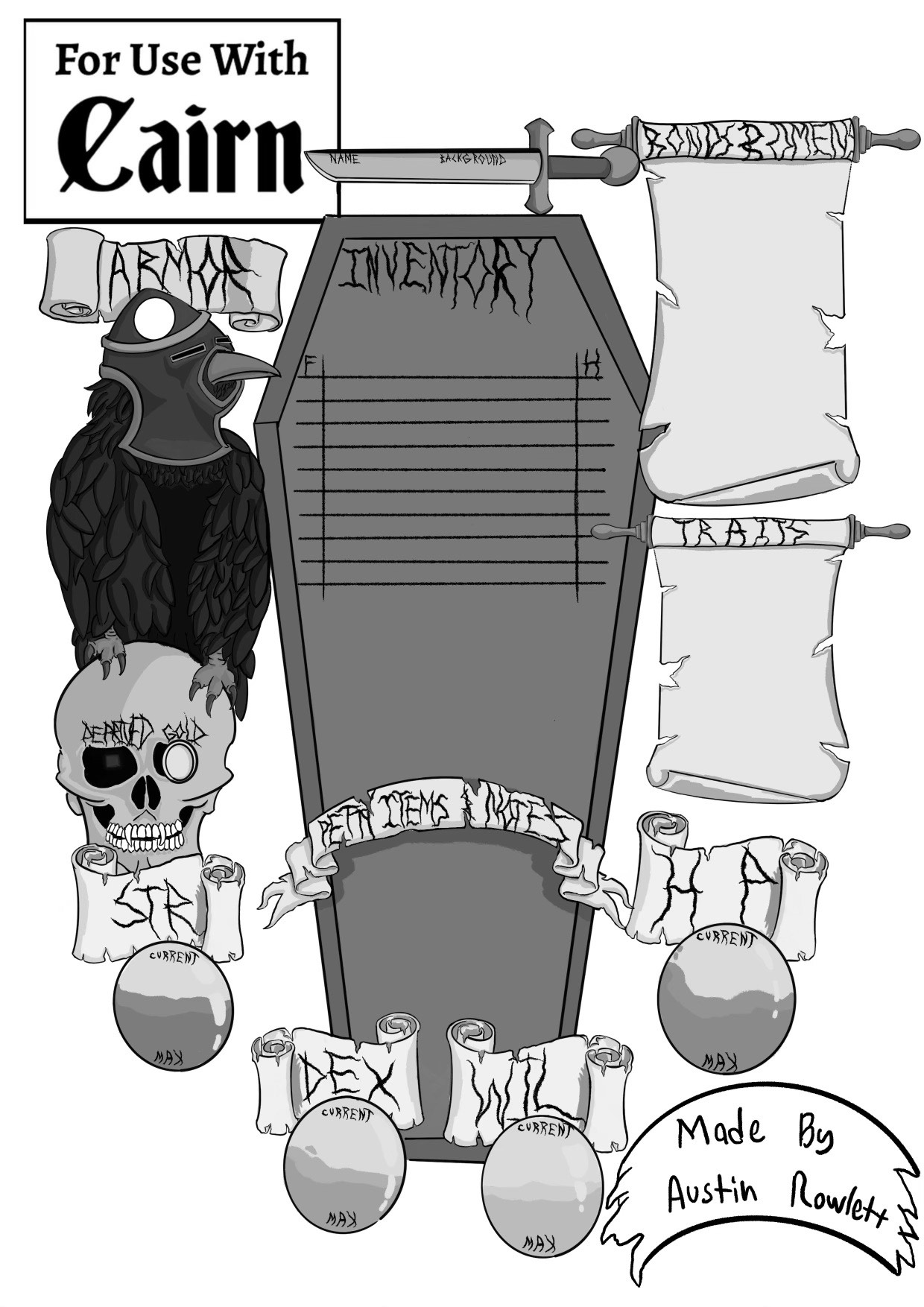 Here are 4 custom Cairn character sheets for use with Cairn 1e & 2e